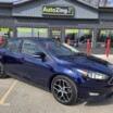 The 2017 Ford Focus SEL offers a stylish and tech-forward driving experience with features like 17-inch machined-aluminum wheels, fog lamps, black headlight bezels, and a power moonroof.